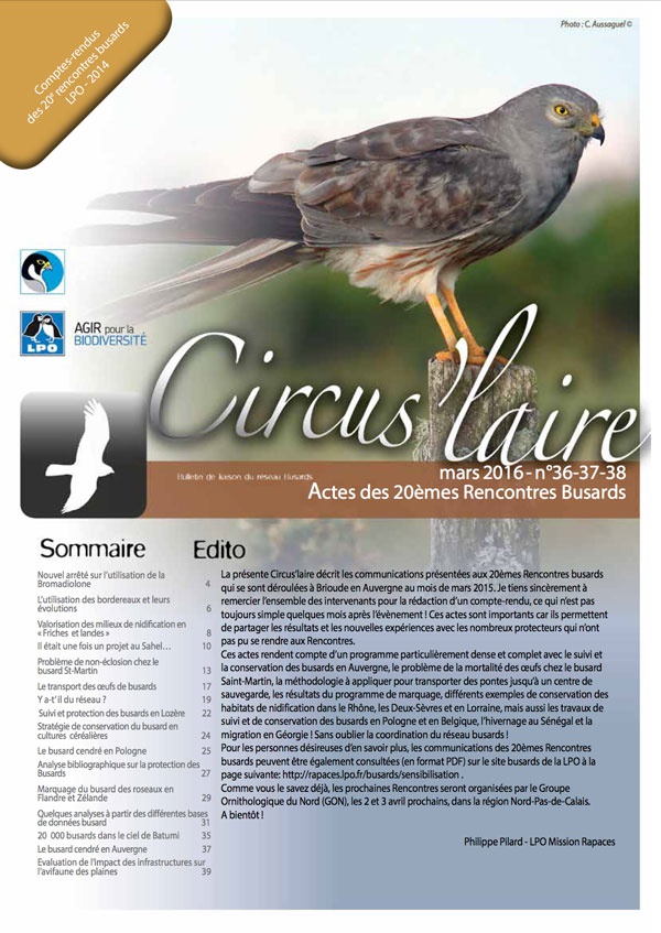 Le bulletin Circus’laire n° 36-37-38 est paru. Il constitue les actes des 20è rencontres du réseau Busards. Vous pouvez le […]