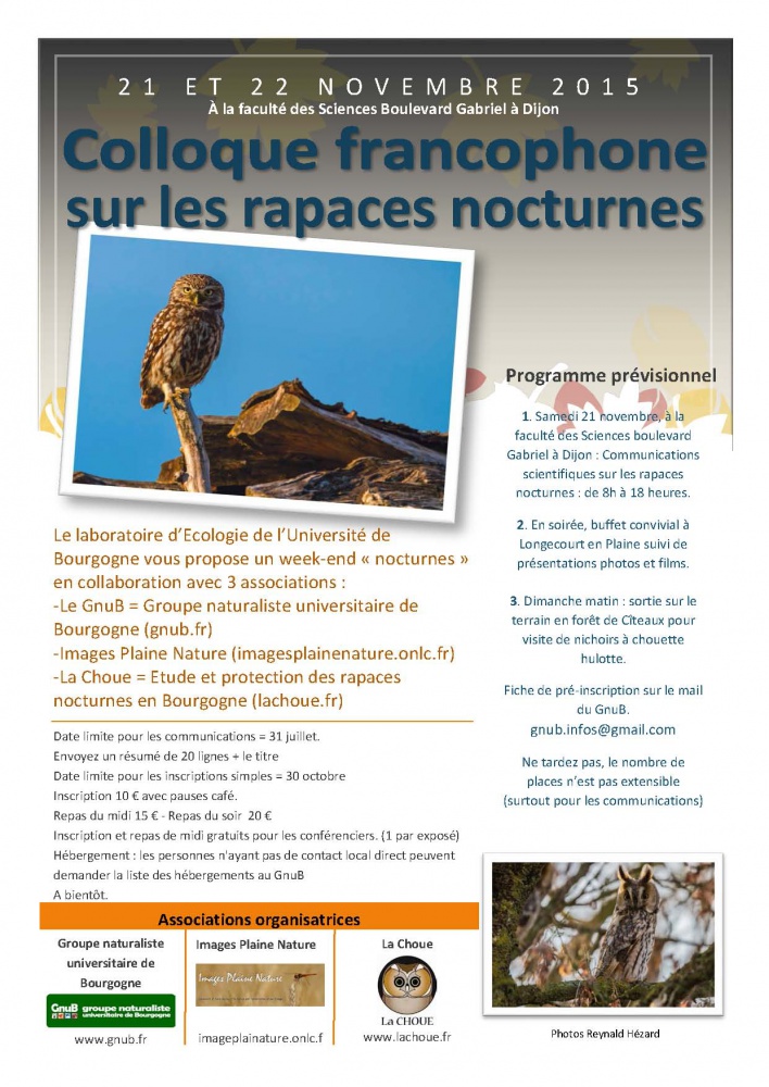 Bonjour à tous, Les 21 et 22 novembre 2015, le laboratoire d’Écologie de l’Université de Bourgogne propose un colloque francophone […]
