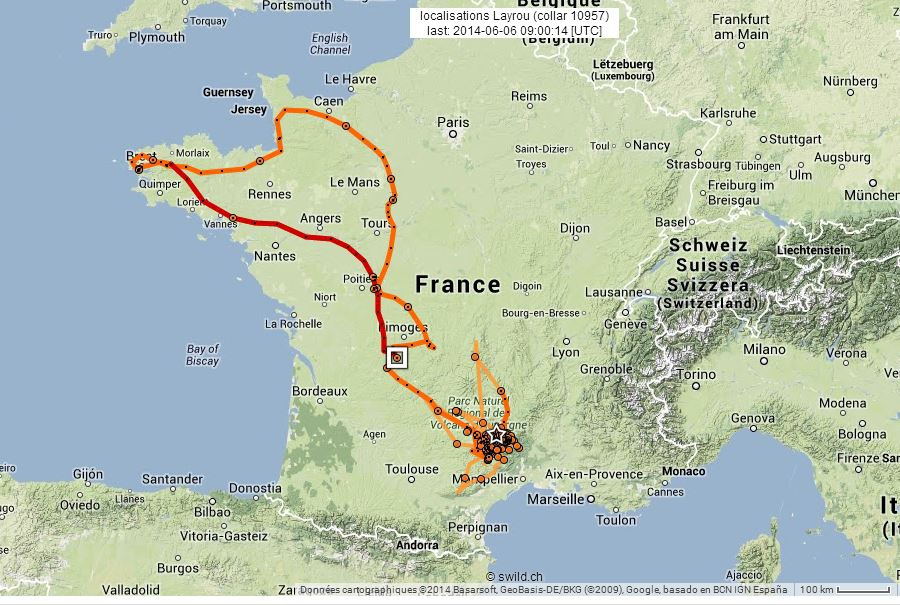 Layrou, lâché en Aveyron en juin 2013, vient de réaliser un étonnant déplacement vers le Nord-Ouest de la France. Les […]