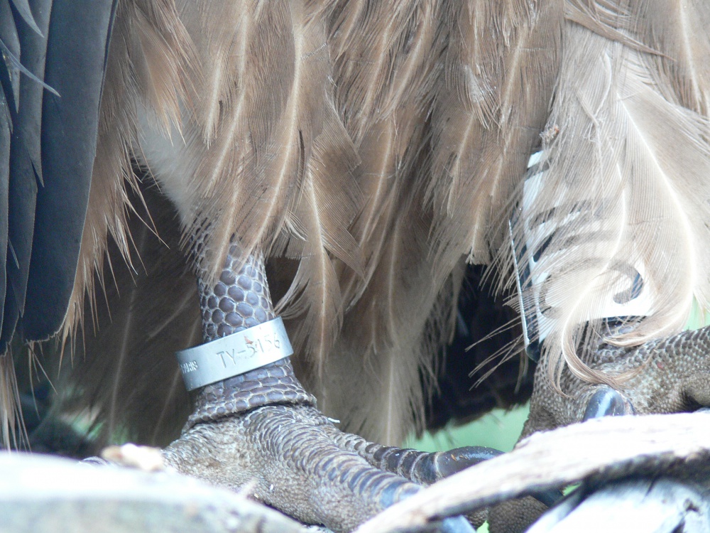 Grâce à ses deux bagues (la première en métal marquée TY-5156 et la seconde en plastique portant FNC), cet oiseau a pu être identifié. Il s’agit d’un jeune vautour né cette année dans les gorges de la Jonte, proche des gorges du Tarn, en Aveyron (12).