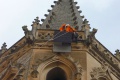 Le département de Vaucluse possède deux couples de faucons pèlerins nicheurs. Le premier site de nidification a été découvert en 1991 au nord du Mont Ventoux (V. Joubert et F. Gilles) et le deuxième site au sud du Mont Ventoux en 1996 (O. Peyre ). En 1996, G.Olioso dans « Les Oiseaux de Vaucluse » indique que des faucons pèlerins provenant du nord de l’Europe hivernent en Vaucluse et peuvent être observés en plaine dès le mois d’octobre. Concernant cette espèce, le Vaucluse héberge donc des populations sédentaires et d’autres hivernantes. Pour autant, alors que toutes les conditions sont réunies pour accueillir ce faucon dans notre département, la situation n’est pas pleinement satisfaisante quant à leur nidification. Notre département possède de nombreuses falaises calcaires pouvant servir de site de nidification, mais la présence du grand-duc et le développement du tourisme de plein air en région méditerranéenne peuvent représenter des éléments perturbateurs non négligeables quant au succès d’implantation de la nidification sur des sites naturels. Les autres obstacles portant sur cette nidification en Vaucluse (collectionneurs d’œufs, pesticides, prélèvements dans la nature pour la fauconnerie) ne semblent plus être les causes majeures de perturbation. Reste toujours à l’heure actuelle le délicat problème des tirs illégaux pendant la période de chasse… En Vaucluse, beaucoup de communes notent que les populations de pigeons bisets domestiques, de corvidés et d’étourneaux sansonnets entraînent des dégradations au niveau des bâtiments et des nuisances diverses et que le contrôle de ces populations devient un objectif majeur. Nous inspirant des poses de nichoirs en milieu urbain pour faucon pèlerin réalisés en France depuis de nombreuses années (Albi dans le Tarn, Nancy, Loon-Plage, Dunkerque, Bourg-en- Bresse, Paris…), il était important que la LPO PACA puisse à son tour proposer, pour la première fois en Vaucluse et en région PACA, une implantation en milieu urbain de nichoir pour le faucon pèlerin, face à la faiblesse des données en regard des sites naturels de nidification de cette espèce. Le choix d’implantation du nichoir à cet endroit dans la ville de Carpentras a été dicté par de nombreuses raisons : proximité du massif du Ventoux porteur de sites de nidification sur ses piémonts ; présence régulière d’observations de chasse de faucons pèlerins dans les plaines et collines alentours pendant les différentes saisons ; population importante de pigeons, de corvidés et en hiver d’étourneaux dans cette commune ; présence d’un point « haut » dans la plaine comtadine représenté par le clocher de la cathédrale Saint-Siffrein de Carpentras ; une écoute très attentive pour ce projet tant au niveau des services techniques de la mairie, que de l’architecte des bâtiments de France et du diocèse ; compétence du service technique de la ville pour la fabrication du nichoir et la mise en relation avec des professionnels de travaux acrobatiques. En prenant contact auparavant avec C. Maurel, directeur de la LPO Tarn porteur d’une solide expérience sur la nidification de ce rapace sur la cathédrale Sainte-Cécile d’Albi, ainsi qu’avec F. David de la Mission Rapaces LPO, nous avons pu bénéficier de toutes leurs expériences nécessaires quant au choix d’un site d’implantation favorable (choix du plan du nichoir et des matériaux, choix d’orientation de l’ouverture du nichoir à l’est en fonction des vents dominants et de la pluie – facteurs pouvant toujours être violents en Vaucluse, possible mise en place secondaire d’un suivi par vidéo en cas de succès de la nidification avec éducation du public à l’environnement) . En espérant que notre choix d’implantation, réalisé le 5 novembre 2014 au niveau du clocher de la cathédrale Saint-Siffrein de Carpentras, complètement intégré dans son environnement architectural, soit le plus adéquat possible dans les années à venir pour notre pèlerin !
