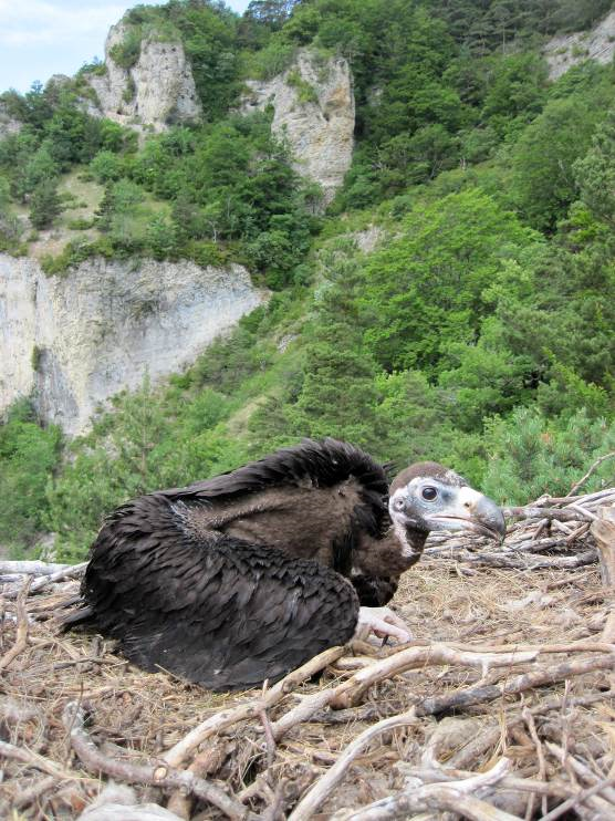 C’est en Forêt Domaniale de l’Eygues (26) qu’a été constatée et suivie la reproduction, avec succès, du Vautour moine, par l’Association Vautours en Baronnies avec la participation de Sandrine Souvignet Technicienne de l’UT Tricastin-Baronnies.
