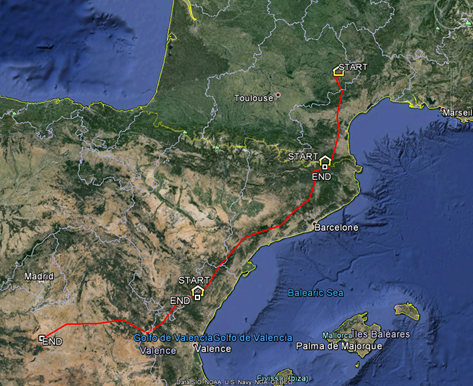 Le 25/05, Abricot rejoint la Catalogne et en 2 jours il parcourt environ 700km! Il atteint le Sud Est de Madrid.
