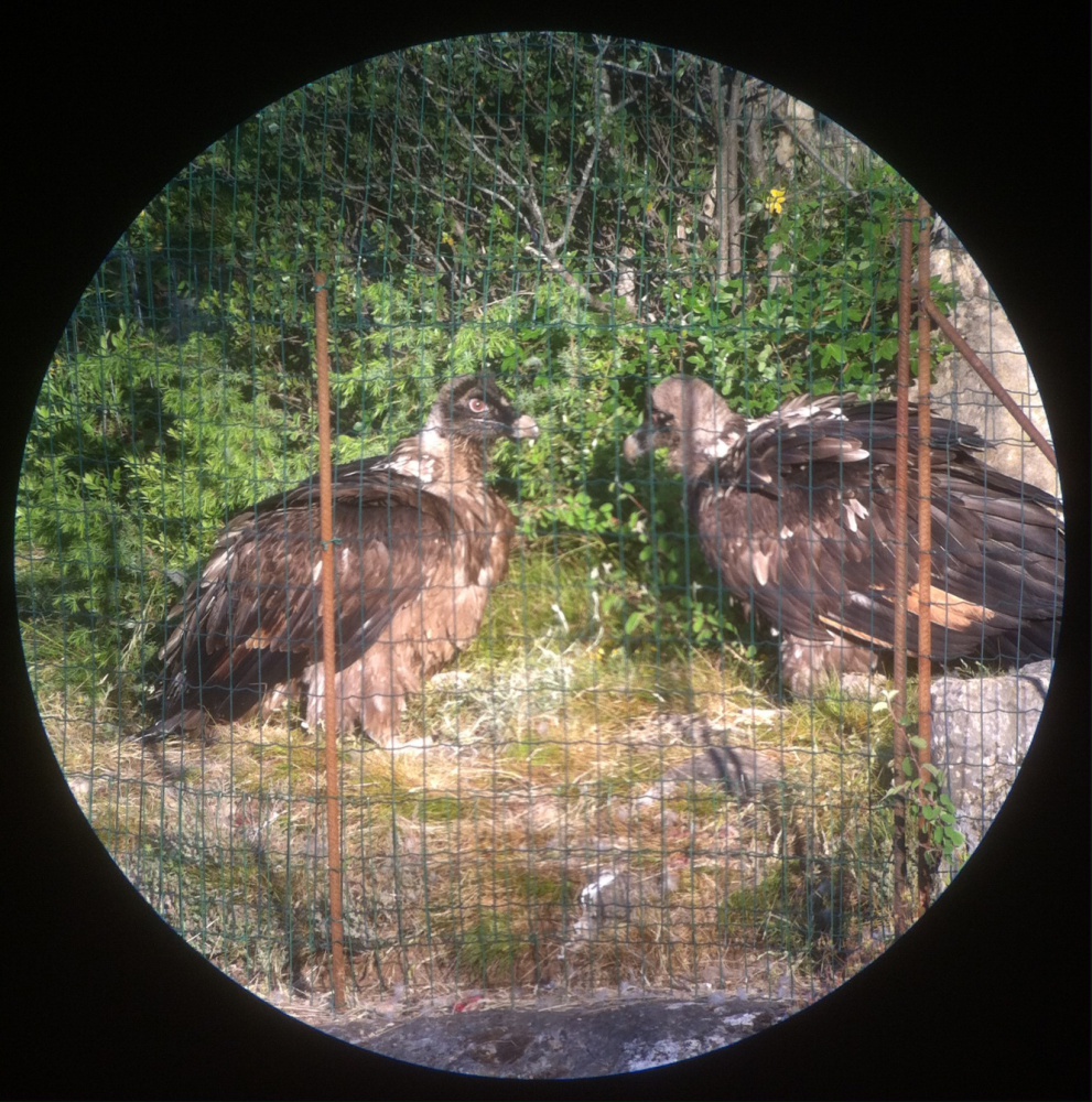 La première semaine sur le site fut riche en émotions pour nos deux gypaètes.