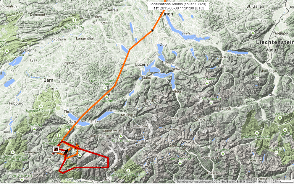 Adonis nous avait déjà surpris avec un long déplacement de près de 1500 km dans le Nord Est de la France, en mai dernier (consulter ici la brève sur les précédents déplacements d’Adonis).
