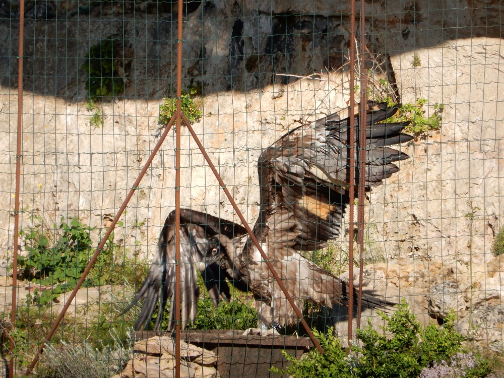 Larzac a semblé, quant à lui, manifester une certaine impatience et l’envie de découvrir les alentours de la vire en tirant régulièrement sur le grillage avec son bec.