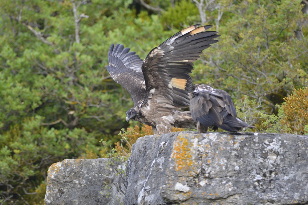 Les deux gypaètes lâchés en 2015 ont à présent quitté le site de lâcher des gorges du Trévezel. A partir de mi-septembre, quasiment trois mois après leur envol, Larzac et Cazals se sont établis dans les gorges de la Jonte. Ils ont rapidement été rejoints par Layrou (qui n’a pas quitté les Grands Causses depuis son relâcher). Les trois individus ont d’ailleurs été observés à plusieurs reprises ensemble, en aval des gorges.