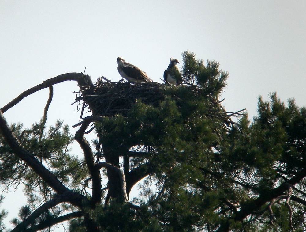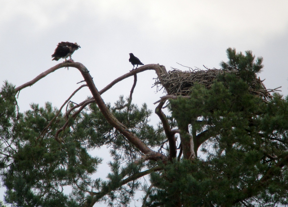 Un mâle non bagué est observé le même jour. Après être resté quelques temps en compagnie de Panchita sur l’aire du Ravoir, il vient de rejoindre celle qui est probablement sa femelle habituelle, tout juste arrivée de migration sur leur nid de l’an dernier situé à quelques encablures de l’étang…