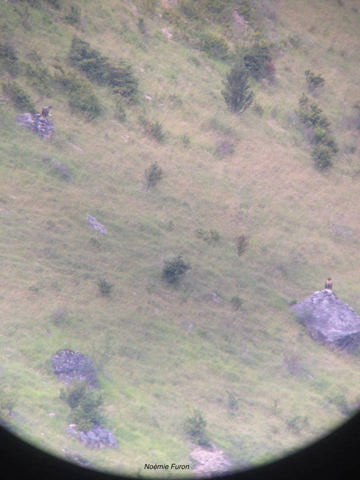 Alors qu’elle était posée près du rocher « Cayla », un jeune aigle royal est passé juste devant elle, attirant son regard, mais celui-ci est reparti aussitôt.