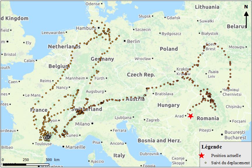 Le voyage d’Adonis, jeune mâle gypaète barbu de 2 ans se poursuit. Réintroduit dans les Grands Causses (Massif Central) en 2014 dans le cadre du projet LIFE GYPCONNECT, Adonis a déjà réalisé un voyage au nord de l’Europe (Belgique, Allemagne) avant de redescendre par les Alpes.