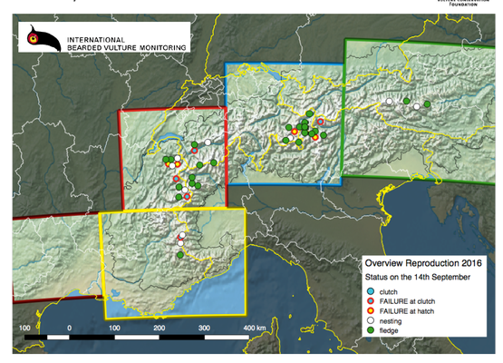 Toutes ces données sont stockées dans la base de données de la surveillance internationale du gypaète barbu (IBM), un programme créé pour suivre et étudier cette espèce dans les Alpes. Nous tenons à remercier l’ensemble du personnel et des bénévoles des partenaires IBM, pour leur fantastique suivi et les efforts de surveillance.