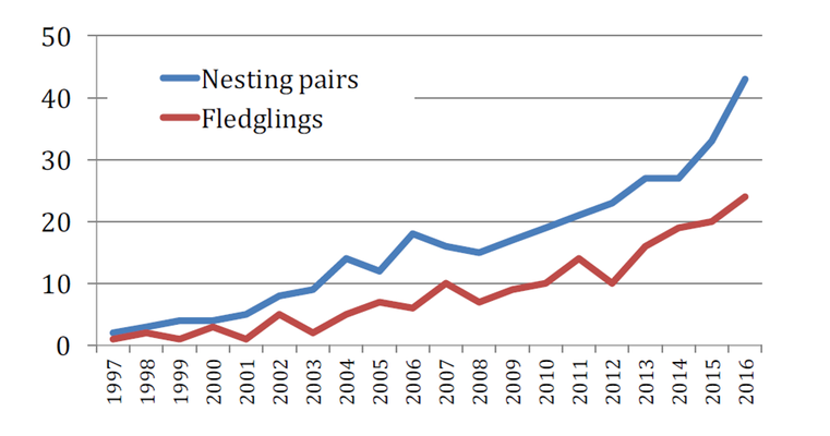 L’augmentation du nombre d’oisillons, de territoires occupés et de pontes est un signe très positif d’une population de plus en plus saine.