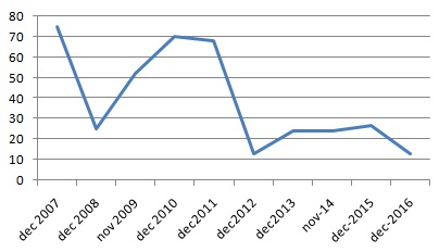 Dans l’Aveyron à l’initiative de SOS-Busards, 11 dortoirs contrôlés avec 26 oiseaux contre 48 l’année dernière, les 10 et 11 décembre 2016. A noter un pourcentage deux fois plus élevé de mâles adultes.