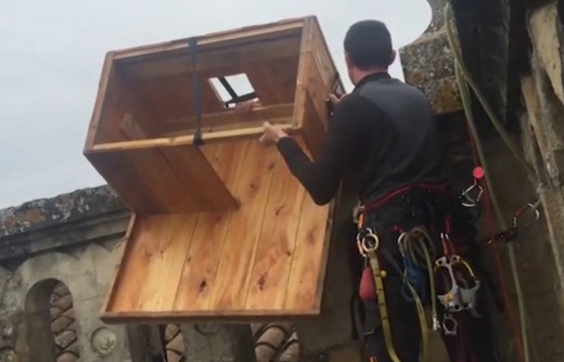 Un nouveau nichoir construit par des élèves de l’IME Mathalin a été installé le 3 mars sur la cathédrale d’Auch, dans le Gers. Élèves, services techniques de la mairie et un membre du groupe ornithologique gersois ont assisté à sa pause, délicate.