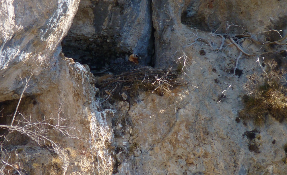 En 2002, dans le cadre du premier plan d’actions en faveur du Gypaète barbu dans les Pyrénées, le Peloton de Gendarmerie de Haute Montagne (PGHM) d’Oloron Ste Marie (64) avait été sollicité par la LPO et par la DIREN (ex DREAL) régionale afin d’approfondir manuellement une aire peu abritée et exposée aux intempéries située au Pays Basque près du col d’Organbidexka. L’entreprise expérimentale fut périlleuse pour ces agents de l’Etat, et il aura fallu 15 ans d’attente pour voir enfin ce projet porter ses fruits : en effet pour la première fois cette année, motivé sans doute par les échecs de reproduction répétés dans d’autres aires les années précédentes, un couple de gypaète barbu niche dans l’aire « du PGHM » depuis janvier 2017. Entre temps un couple de faucon crécerelle occupait l’aire.
