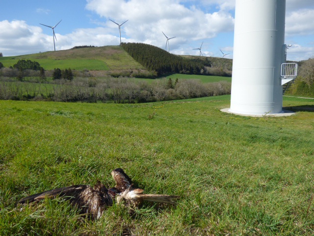 Le cadavre a très rapidement été localisé par Christian Itty (ONCFS) à proximité immédiate d’une éolienne.