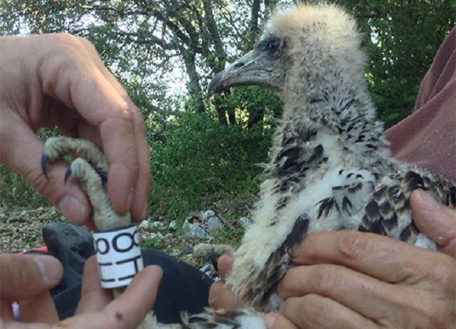 Le petit vautour né ce printemps dans la vallée de l’Ibie a donc été bagué aujourd’hui le 17 juillet. Une opération destinée à suivre sa progression et ses déplacements. Ce baguage a été fait également dans le cadre d’un programme de baguage national sous l’égide du Muséum National d’Histoire Naturelle de Paris.