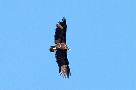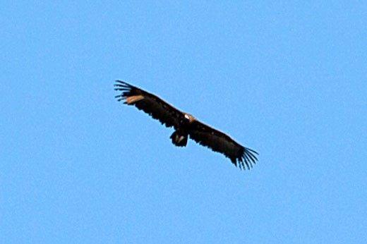 On notera également que des rémiges sont décolorées, ce qui doit correspondre à un marquage. Je vais d’ailleurs entrer en contact avec le suivi des vautours moines pour obtenir plus d’informations et pour leur signaler l’observation. J’ajouterai les éléments à ce billet dès que possible.