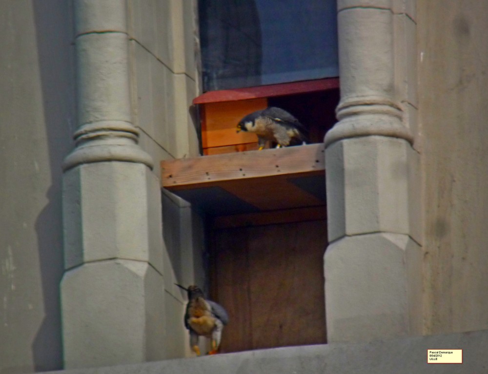 Notre couple de pèlerins s’est approprié le nichoir posé l’année dernière mais elle couve sur le plateau extérieur car il est protégé par les latérales du bâtiment( exposition légère sud-est).