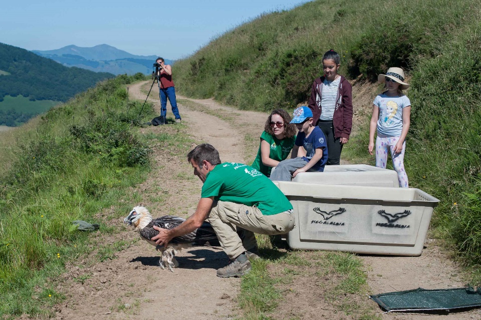 Samedi 23 juin, le gypaète Silvano, une femelle de 23 ans, a été libéré dans les montagnes de Cize au Pays Basque. Le centre de soins Hegalaldia veillait sur elle depuis presque 5 mois.