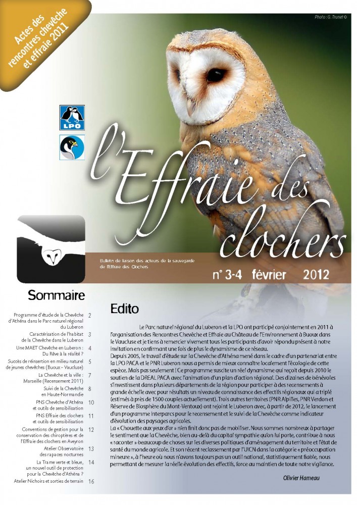 Bonjour à tous, le bulletin « l’Effraie des clochers » 3-4 Actes des rencontres chevêche et effraie 2011 vient de paraitre. N’hésitez à vous le procurer sur ce portail ou à le demander auprés de la LPO Mission Rapaces à Paris.