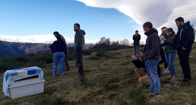 « Il a réappris à voler et à chasser car, alors que certains mangent des animaux morts — même si l’aigle n’est pas réputé pour être un charognard — lui n’en a pas voulu. On lui a donc amené des pigeons et des lapins vivants pour qu’il puisse manger », détaille Thomas Raza qui, avec sa collègue, regrette de ne pas l’avoir vu en train de prendre ses repas. « Il attendait qu’on s’en aille », sourient les deux soigneurs qui ont donc « bichonné » leur pensionnaire insolite jusqu’à ce jeudi. Car ce jeudi matin, alors qu’il était « en pleine forme », l’aigle a été relâché. « Nous le ramenons au Signal du Chioula, d’une part parce que c’est dans le secteur où on l’a retrouvé. Ensuite, parce qu’au niveau de la table d’orientation, il y a une aire de départ de parapente. Nous avons donc de la place pour procéder au lâcher », indiquent Thomas Raza et Pauline Viès. Mais avant de retrouver le ciel et les montagnes ariégeoises, l’aigle a été pesé, après une tentative, infructueuse, de pose d’une bague : « Sa patte est trop grosse. Pourtant, c’est une bague exprès pour les aigles ! », s’étonnent les soigneurs qui ont donc préféré abandonner leur idée. [Cliquez pour agrandir l’image] En toute fin de matinée, en présence d’une demi-douzaine d’élèves vétérinaires toulousains, d’un technicien de la fédération de chasse de l’Ariège, et de son « sauveteur » axéen, et après une heure et demie de route depuis Mazères, l’aigle a retrouvé sa liberté depuis le col du Chioula. Après s’être débarrassé d’un groupe de corneilles peu ravies de cette intrusion, le rapace a disparu en direction de l’Aude voisine… [Cliquez pour agrandir l’image]