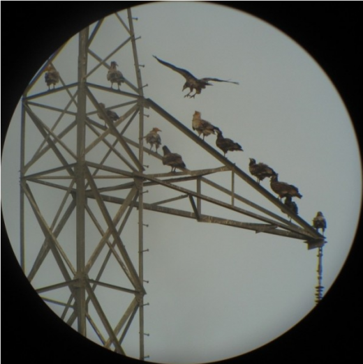 Electrocutions and collisions with electrical lines were identified as the main threats for vultures. 180 km of dangerous electrical lines (low and medium-voltage power lines) were inspected for electrocution and collision victims. The field team found 42 bird carcasses of which 6 Egyptian vultures and 9 other vultures. Out of the 42, 22 birds of prey were electrocuted and 15 collided with power lines. Most of the birds were found along highly dangerous electrical lines in the Metehara (high number of easily reached meadows) and the Logia zones (along 2 landfills with many scavengers). The necessary steps to fight this scourge will be taken with MSB II project.