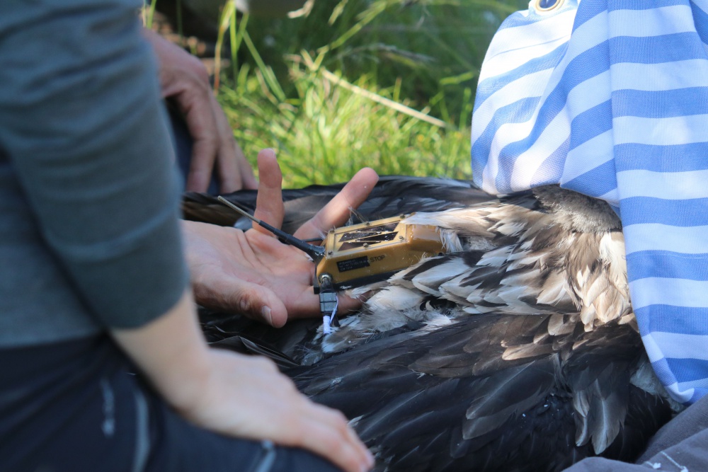 Les oiseaux ont été équipé de leurs balises GPS avant le dépôt dans la cavité. L’intervention dans la vire s’est déroulée sans difficulté et calmement.