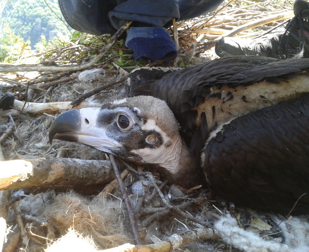 (attention cette photo a été prise lors de suivi par nos équipes, nous rappelons que se rapprocher de nids de vautours est une source importante de dérangement).