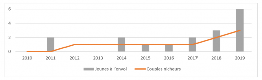 Le bilan pour 2019 est donc de 3 couples reproducteurs et 6 jeunes.