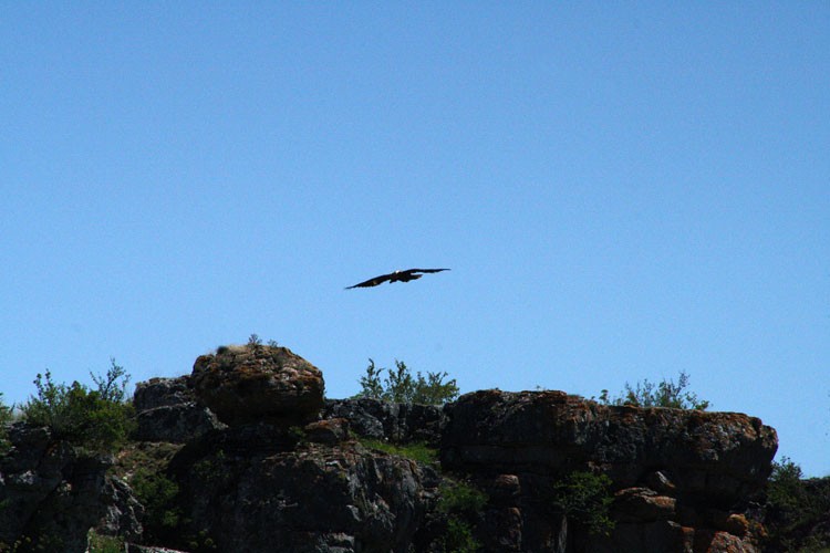 Autres observations : Un épervier et un circaète repérés. Des vautours moines et fauves semblent motiver nos deux jeunes oiseaux en passant au-dessus d’eux…