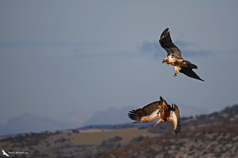 Layrou et Adonis, mâles adultes lâchés en 2013 et 2014, sont toujours fidèles à leur site. Ils ont été observés rechargeant leur aire récemment. Des interactions assez musclées ont été observées entre Layrou et des vautours fauve et moine, probable indice de comportement territorial.