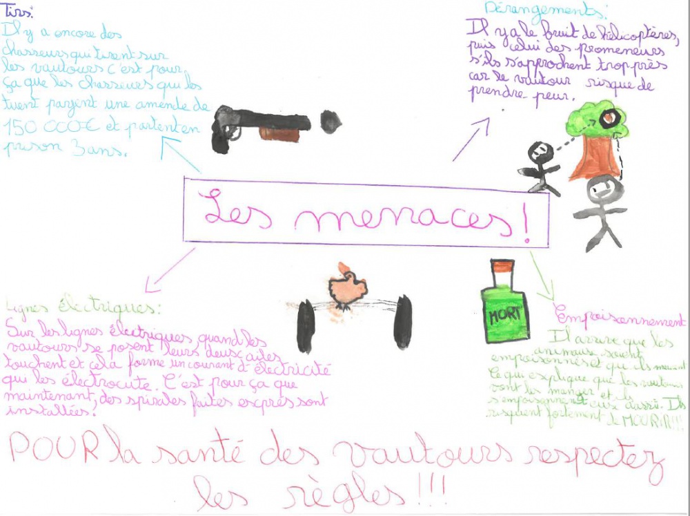 Les enfants de CM1-CM2 de l’école de Rivière-sur-Tarn ont participé cette année à un projet pédagogique avec la LPO Grands Causses, autour des vautours et du Gypaète barbu, avec l’implication de leur enseignante Mme Charlet.