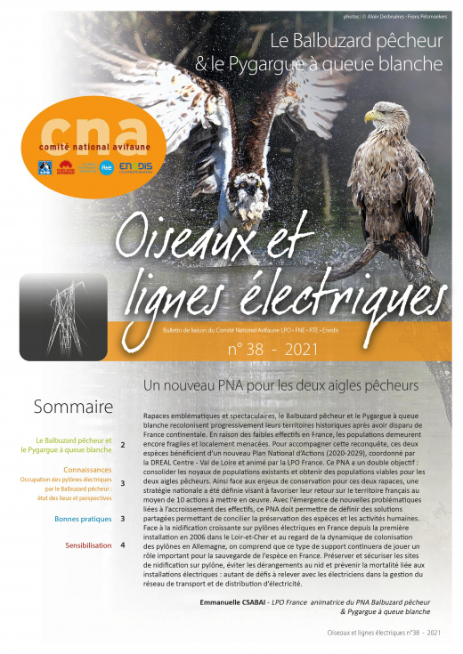 Le bulletin Oiseaux et Lignes électriques n° 38 dédié au Balbuzard pêcheur et au Pygargue à queue blanche est paru.