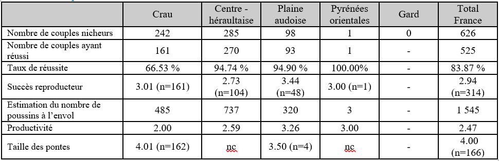 – Des augmentations de 5.22 % des effectifs nicheurs en Crau, de 12.20% dans l’Hérault et de 21.00 % dans l’Aude !