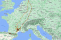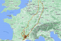 Après des explorations jusque dans l’Aude début avril, Peyre a volé en direction du Nord, le 10/05/2022. Il a atteint l’Allemagne (côte de la Mer du Nord, au Nord-Ouest de Brèmes), le 12/05. Puis, il est reparti sans attendre vers le Sud, en longeant la frontière franco-suisse.