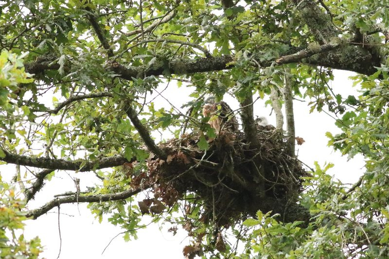 L’aire, située à près de 30 mètres de hauteur dans un Chêne pédonculé d’une centaine d’années, se trouve dans une palombière en activité. Elle a été cherchée et trouvée le 20 juillet 2022 afin de confirmer ou non le succès de reproduction de ce couple ; des travaux de débroussaillage de la parcelle, envahie par les ronces y étant prévus pour début août.