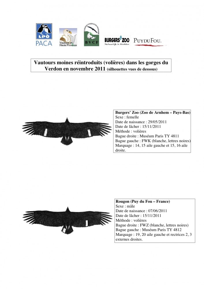 Le 4 septembre 2012, un Vautour moine a été observé au plan d’eau de Booz (Saint-Germain-du-Teil, en Lozère). Arrivant du sud, il passe à basse altitude, puis continue sa route vers le nord en suivant le fond de vallée. Le marquage alaire a permis d’identifier cet oiseau non originaire des Causses : il s’agit de Burgers’ Zoo, une jeune femelle Vautour moine originaire du Zoo de Arnhem (Pays-Bas) et lâchée en novembre 2011 dans le Verdon.