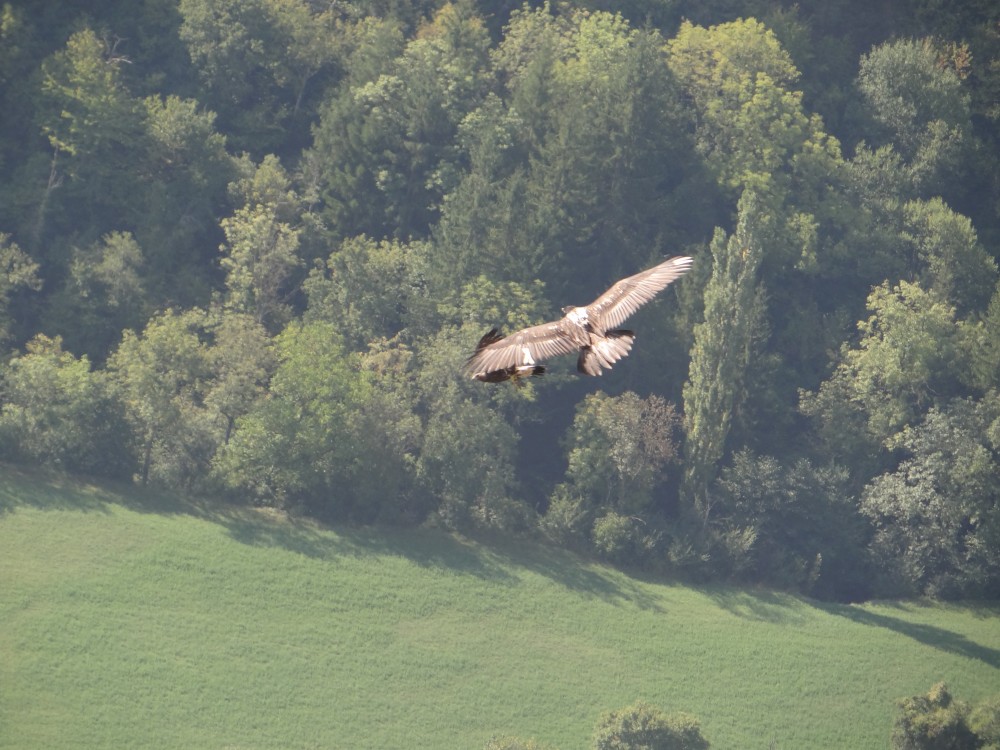 Après avoir passé plusieurs jours dans les Cévennes (Gard), Cardabelle fréquente à nouveau le secteur du site de lâcher. Dimanche 23 septembre 2012, elle a été observée au cours d’une interaction avec un jeune Aigle royal.
