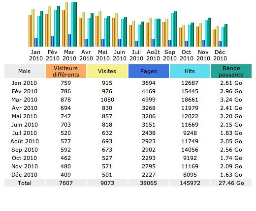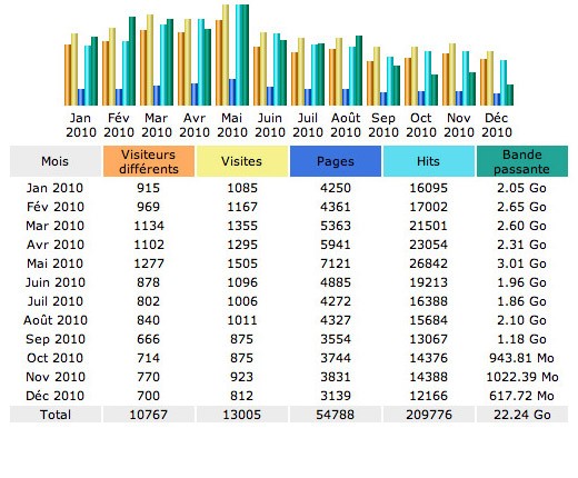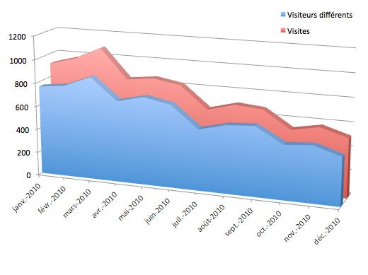 La fréquentation est en légère baisse de janvier à décembre, tout en étant globalement supérieure à 2009 (13 005 visites au lieu de 9 772).