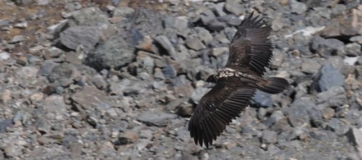 In the meantime in Osttirol an unknown adult and a subadult bird (probably Pinzgarus, Rauris 2008) are flying together in the Valley of Gschlöß. They are often seen together, roosting in the same cliff. Another young bearded vulture Tschadin (Kals 2010) was also flying together with the new pair in June. Find more information on the Austrian birds on the homepage of the NP Hohe Tauern.