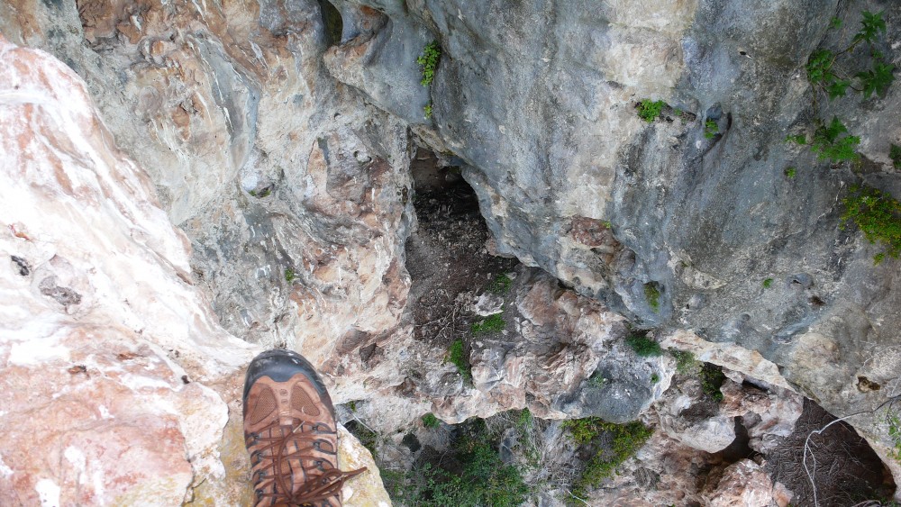 Malgré les équipements en place (voir brève du 8/07/2013) les deux bagueurs devaient se rendre à l’évidence… Impossible de rentrer dans cette cavité en utilisant les amarrages liés au site d’escalade, le surplomb abritant le nid étant trop important.
