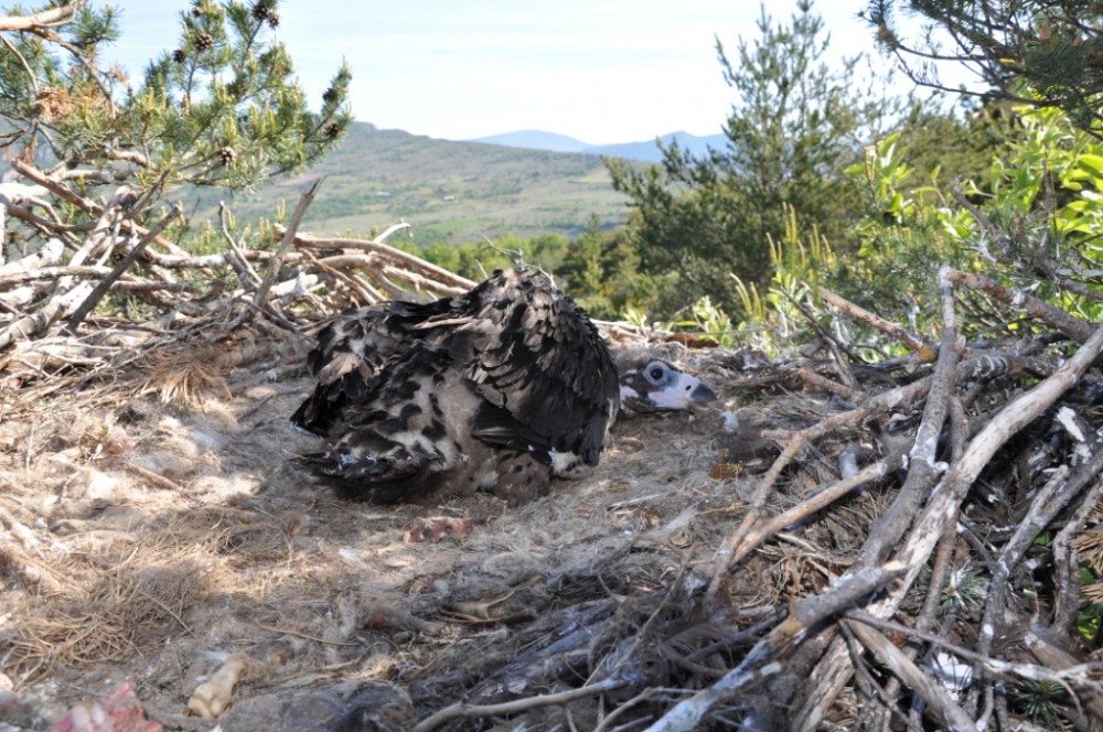 – 1 poussin est mort dans l’aire vers l’âge de deux mois. Les parents de ce poussin avaient également perdu leur jeune au même âge en 2010. Il est possible qu’il s’agisse d’une prédation (Aigle royal ?). Dans les deux cas, la disparition du poussin correspond à la période où les adultes commencent à le laisser seul (prospection alimentaire par les deux adultes),