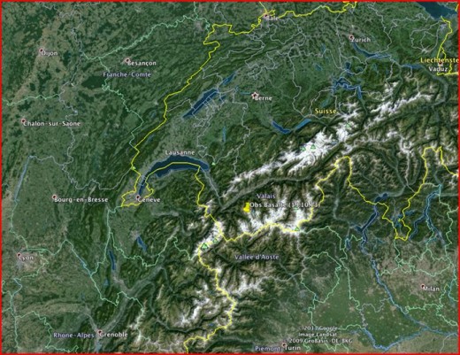 Basalte a été observé le 19 octobre 2013 dans la Vallée de Bagnes (Valais Suisse), par Jean Voutaz. Voici une photo, ainsi qu’une carte du lieu d’observation.