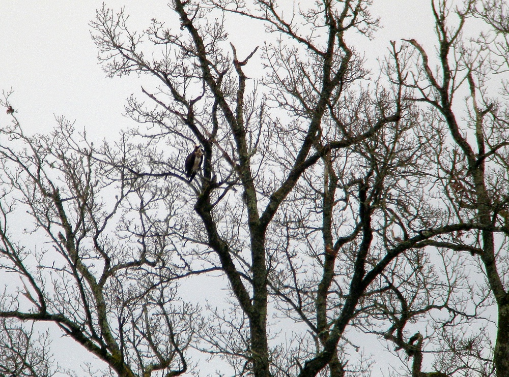 Dès le 14 février, deux observatrices assidues à l’observatoire du Ravoir ont vu un balbuzard survoler l’étang, puis un autre ou le même stationner le lendemain dans un vieux chêne. Le 17 février, des observateurs ont également rapporté avoir vu un balbuzard disparaitre dans les arbres environnant l’étang. Des séances quotidiennes d’observation depuis cette date ont permis à G.Perrodin de contacter un oiseau le 20 février et de le photographier. Cet individu, probablement une femelle, porte une bague jaune sur le tarse droit. Rien ne permet évidemment pour le moment d’en être certain, mais compte tenu de ces observations, il se pourrait que ce soit »Panchita » qui soit déjà revenue du nord de l’Espagne où elle passe l’hiver et où elle a été baguée encore en plumage juvénile en février 2011. L’an dernier, elle avait été vue pour la dernière fois près de son nid à la mi-août, bien avant l’émancipation de ses deux premiers jeunes..
