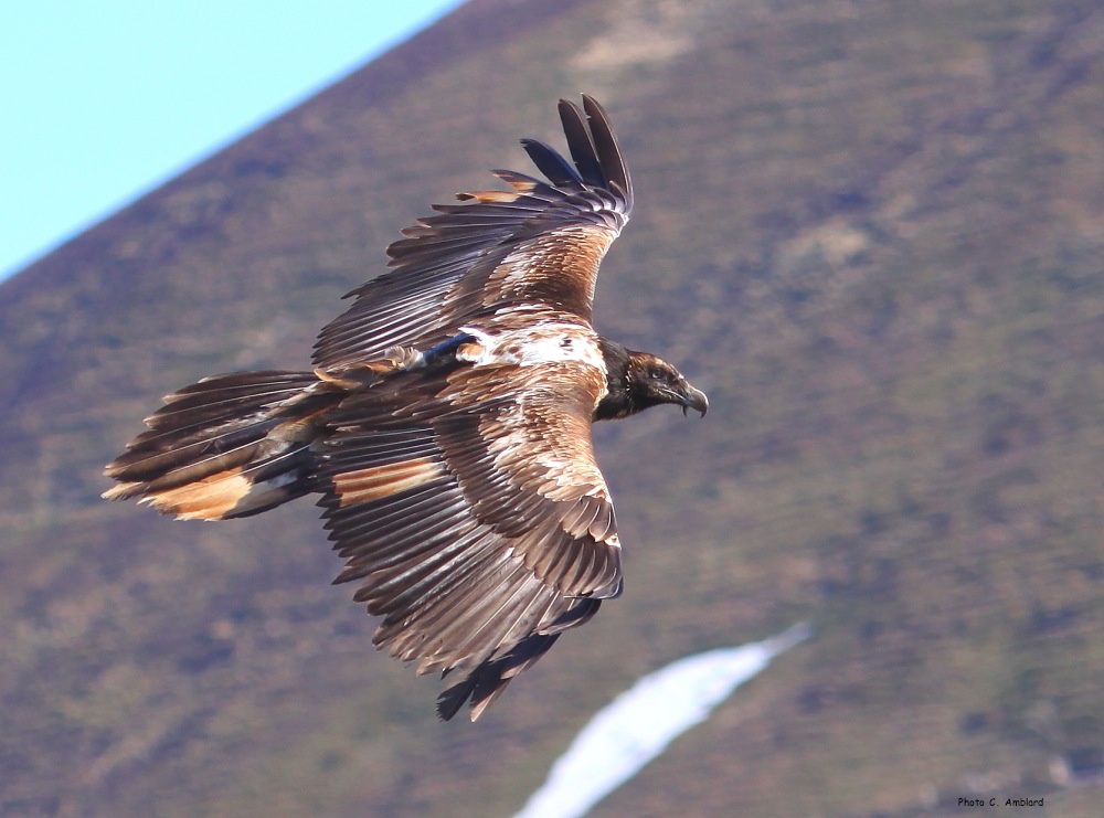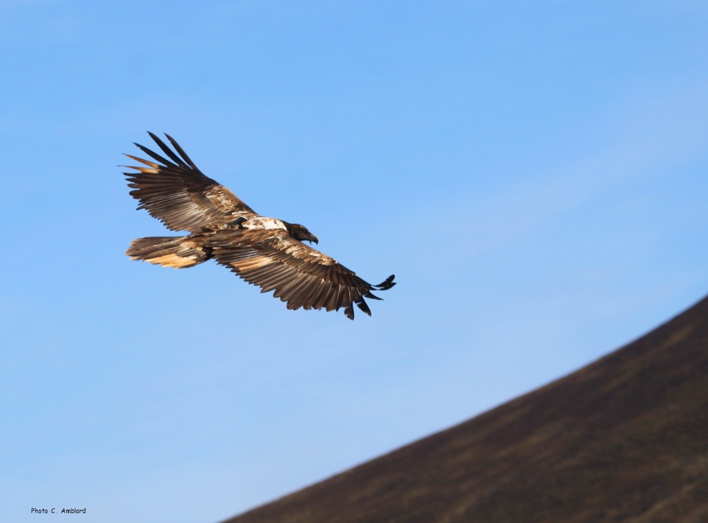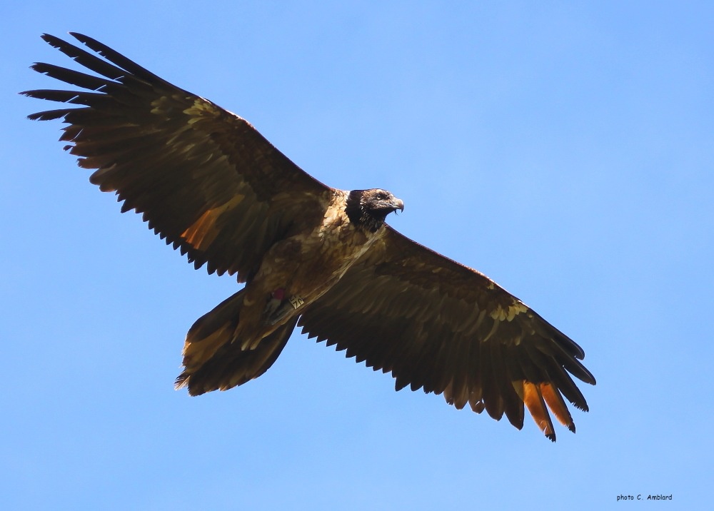 L’apparition de 10 vautours fauve se fait aux alentours de 17h45, suivis 10 à 15 minutes plus tard par un Gypaète barbu. Celui-ci survole l’observateur de très près pendant plusieurs minutes, qui l’identifie grâce à la bague (JZ).