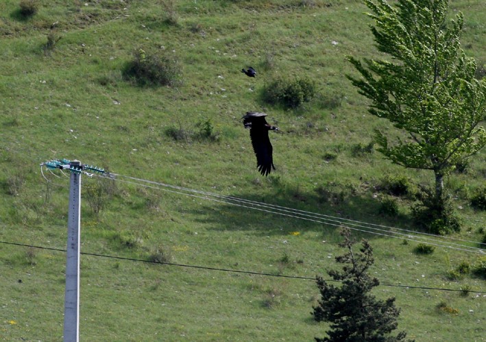 Cependant, le travail de mise en sécurité de ces lignes, réalisé en collaboration avec ERDF, ne peut malheureusement pas éviter tous les accidents car des vautours peuvent exploiter le cadavre d’une brebis morte accidentellement à proximité d’une ligne comme en témoigne la photo ci-contre (©Régis Descamps)…