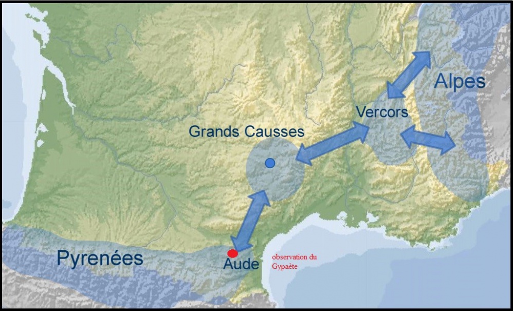 Ainsi, tous ces moyens sont mis en œuvre pour inciter les gypaètes à explorer l’extrême nord-est des Pyrénées et à atteindre le sud du Massif Central (Grands Causses), reliant les Alpes.