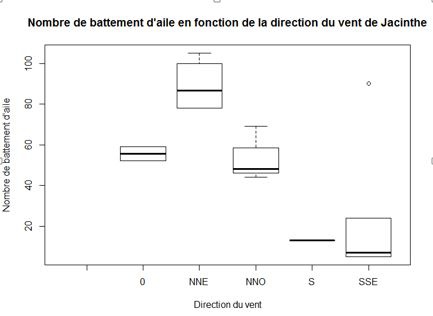 Selon les relevés, les oiseaux battent plus des ailes avec un vent Nord-Nord-Est. Cela va à contre sens de nos hypothèses initiales, selon lesquelles le vent du Sud incite d’avantage les oiseaux à battre des ailes.